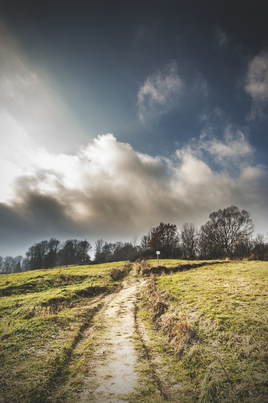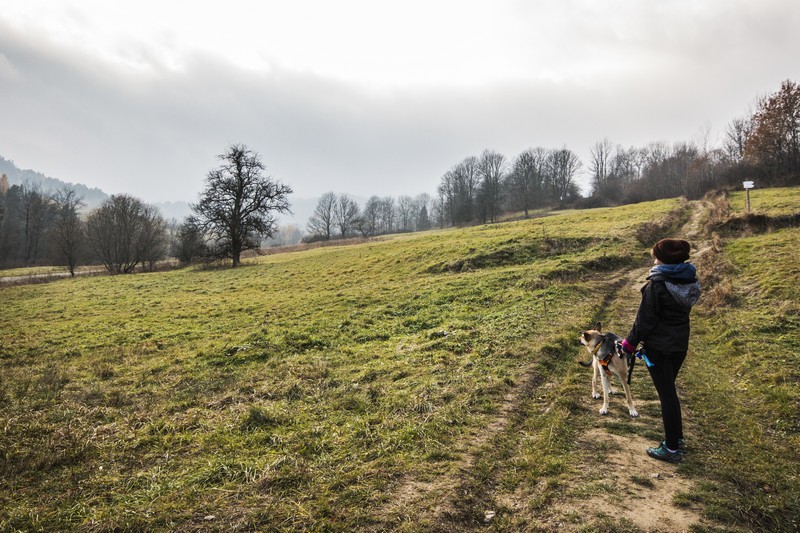 Taka mniej więcej rozścielała się przed nami ścieżynka. Równa, prosta, prawiegładka idealna na leniwy niedzielny spacer. I tak sobie szliśmy rozglądając się wokół, robiąc zdjęcia, rozmawiając, albo odciągając Lunę od Franki. Luna nie może pojąć tego, że Franka jej nie lubi i musimy zachowywać bezpieczną odległość. Ciągle próbuje nawiązać kontakt. Czasem rozczula mnie ta jej wiara w peace and love, a czasem boję się że przypłaci ją życiem.